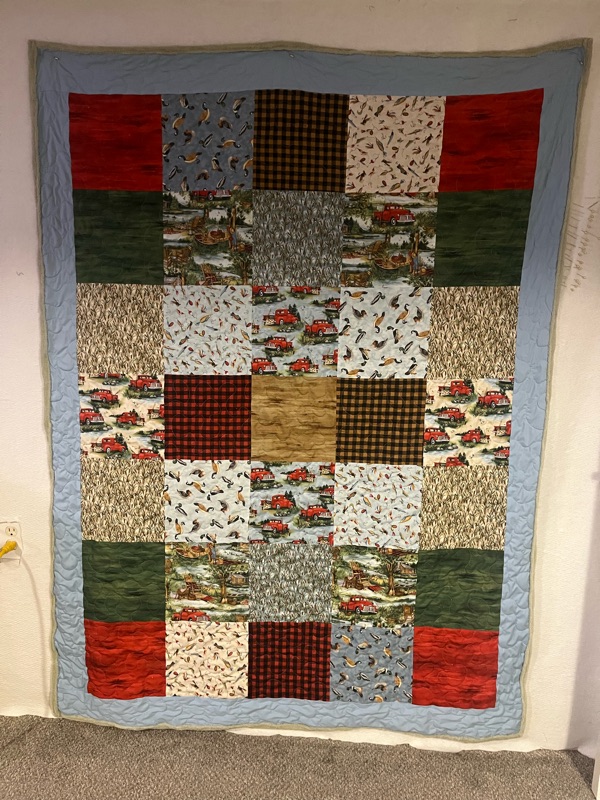 Made for Steven Neumann a Farm Quilt with green fleece backing